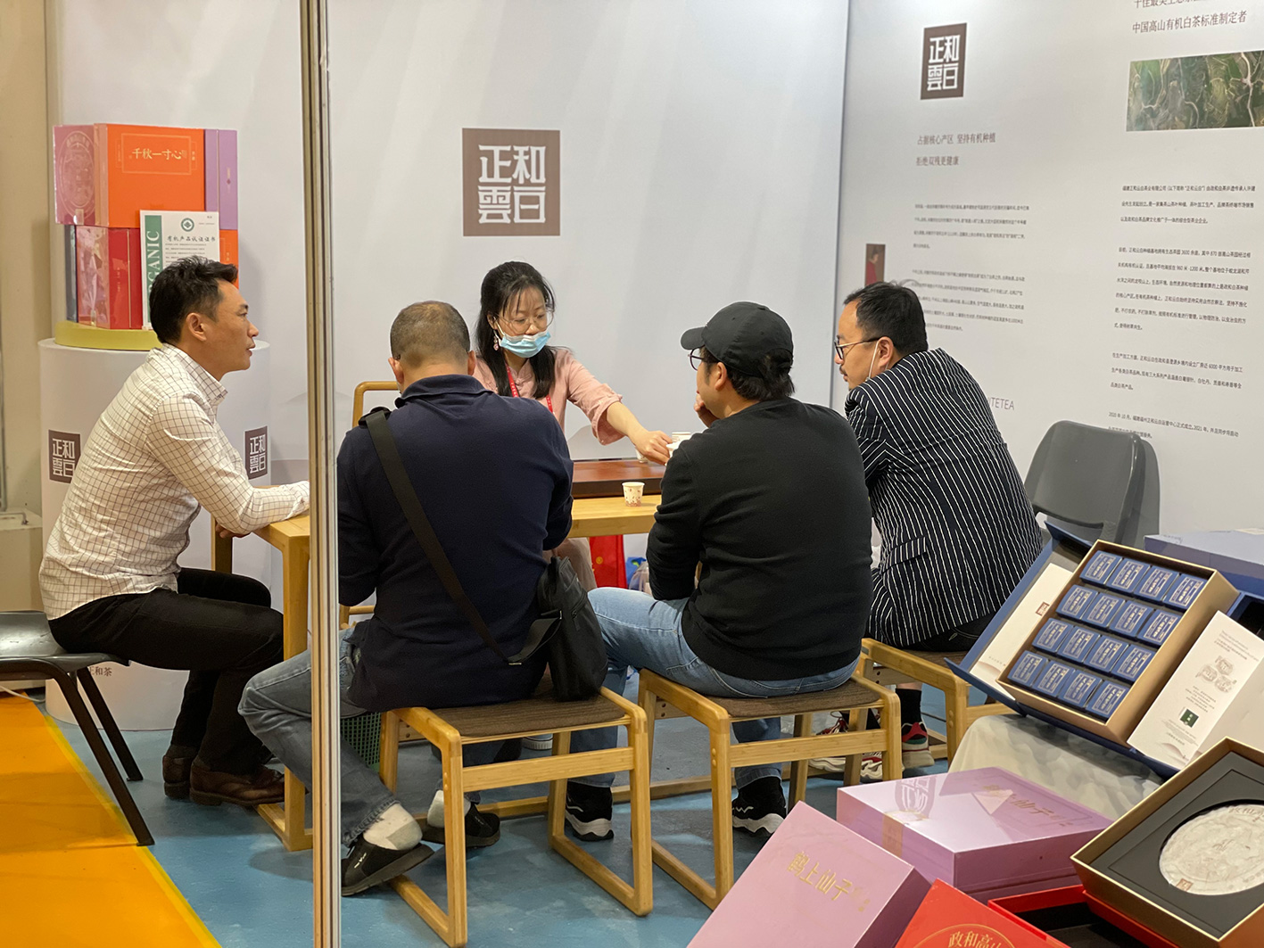 本次展會(huì)上(shàng),正和(hé)雲白(b↔↕©>ái)推出了(le)全新産品系列亮(liàng)®♣相(xiàng)本次展會(huì),新品涵蓋了(le)高(gāo)山(₹φshān)有(yǒu)機(jī)白(bái)茶的(de)各品類茶禮。正和(h飩δ)雲白(bái)專業(yè)的(de)茶藝師(shī)為(wèi)各方Ωπ∑α來(lái)賓講解了(le)政和(hé)白(bái)茶☆Ω÷的(de)曆史文(wén)化(huà),品鑒正和(hé)雲白(bái)高(gā→≥♦₹o)山(shān)系列白(bái)茶。