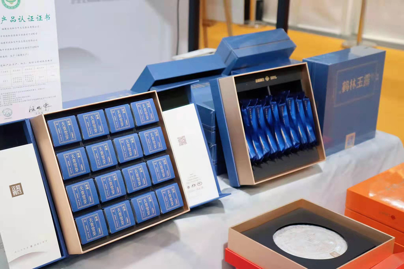 本次展會(huì)上(shàng),正和(hé)雲白(b↔↕©>ái)推出了(le)全新産品系列亮(liàng)®♣相(xiàng)本次展會(huì),新品涵蓋了(le)高(gāo)山(₹φshān)有(yǒu)機(jī)白(bái)茶的(de)各品類茶禮。正和(h飩δ)雲白(bái)專業(yè)的(de)茶藝師(shī)為(wèi)各方Ωπ∑α來(lái)賓講解了(le)政和(hé)白(bái)茶☆Ω÷的(de)曆史文(wén)化(huà),品鑒正和(hé)雲白(bái)高(gā→≥♦₹o)山(shān)系列白(bái)茶。